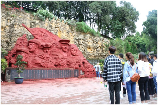 在支部章荣书记的带领下,我们在纪念碑前举行了唱国歌、向革命先烈默哀致敬、献手捧花的仪式,全体党员、预备党员及入党积极分子重温了入党誓词,表达了对党的忠爱,对先烈的敬爱之情。