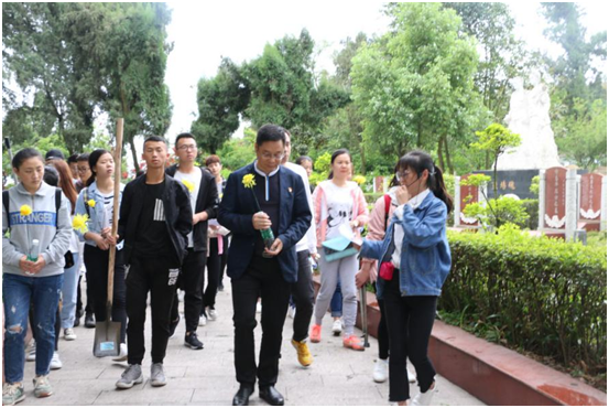 华夏太平事,未敢忘玄黄。遍洒英雄血,我辈承此光!为了缅怀革命烈士,追忆红色岁月,引导广大青年人不忘初心,牢记使命,弘扬爱国主义精神,加强爱国主义教育。康复系党支部于2018年4月13日下午带领支部党员同志、入党积极分子及部分党建促进会学员一行40余人,在自贡市烈士陵园举行了“缅怀革命烈士,追忆红色岁月”为主题的祭扫烈士墓活动。