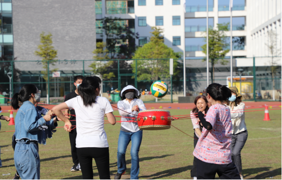 本次运动会共设有超级障碍赛、超级链接和鼓动人心三个体育项目。比赛中,教职工们兴致盎然、精神饱满,每一个比赛项目都是大家齐心协力共同完成,这不但是智慧和体力的角逐,还是团结和协作的完美比拼。一旁的啦啦队情绪高涨,加油声、欢呼声此起彼伏。