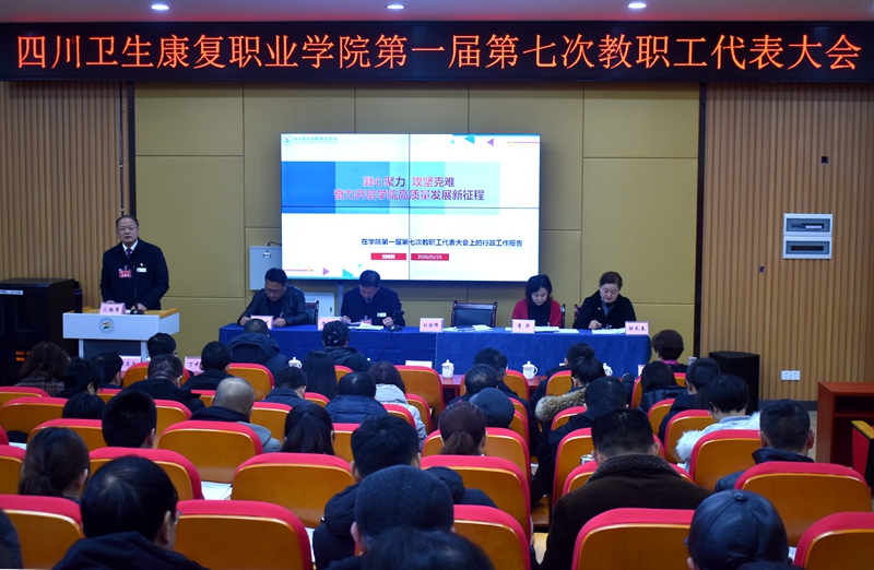 会上,学院党委书记刘建辉代表领导班子向大会作行政工作报告。报告总结回顾了2019年学院在党的建设、教学质量、师资建设、交流合作、社会服务等八个方面取得的成绩。报告指出,2020年是全面建成小康社会和“十三五”规划的收官之年,是贯彻落实“职教20条”的关键一年,做好今年的工作,意义重大。学院要坚持以习近平新时代中国特色社会主义思想为指导,以党的建设为统领,以建设本科职业学校为目标,深入学习宣传贯彻党的十九届四中全会精神,不断完善现代大学制度体系,推进内部治理体系和治理能力现代化建设,着力建设三支队伍,重点推进五项工作,全力落实两项保障,不断提高办学水平,促进学院高质量发展。