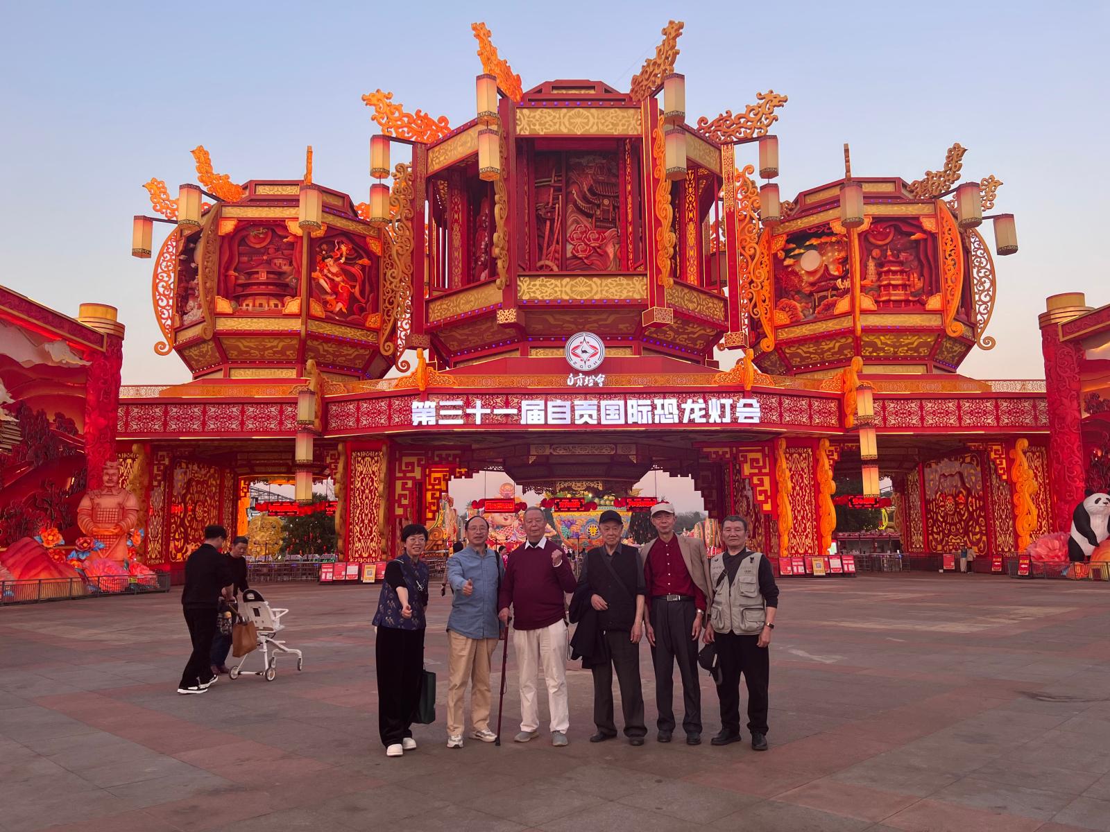 夜幕降临,退休党员干部来到中华彩灯大世界,开展全国灯会灯彩非遗项目学习教育活动。五彩斑斓的彩灯造型各异,将传统文化与现代科技完美融合,生动呈现了15个省国家级灯会灯彩非遗代表性项目近50件灯彩作品及其保护传承成果。