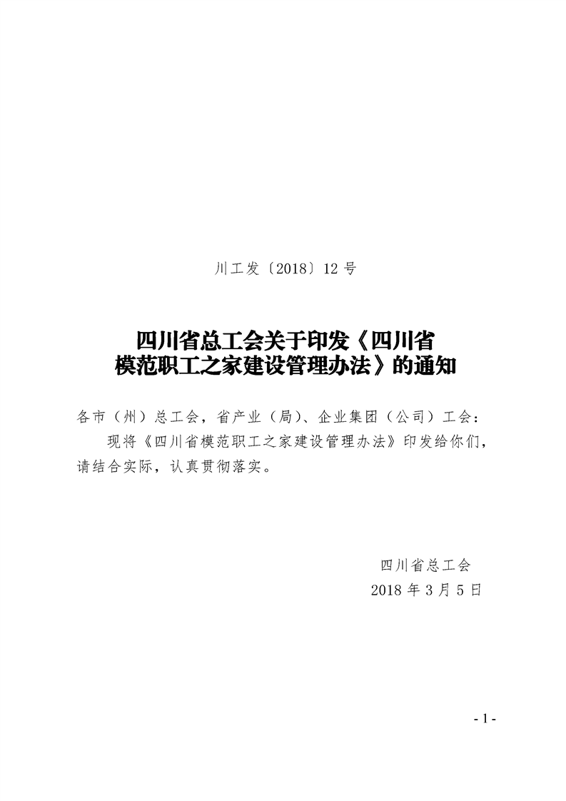 关于印发《四川省模范职工之家建设管理办法》的通知