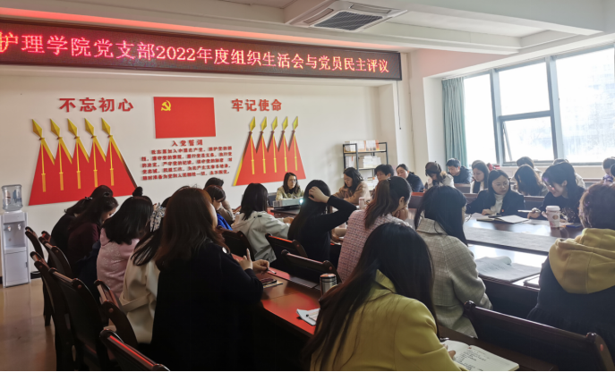 3月8日下午,护理学院党支部在3号教学楼B211顺利开展2022年度组织生活会暨党员民主评议,会议由党支部副书记兰瑚主持,学院党委副书记李华同志莅临指导。