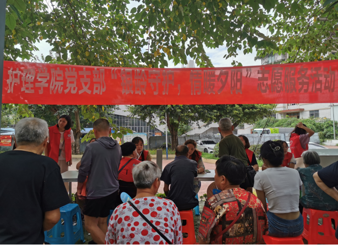 为积极发挥专业特长服务地方群众生命健康,8月30日,护理学院党支部在鸿鹤坝社区开展“银龄守护·情暖夕阳”关爱老人志愿服务活动,为社区老人送去关爱和温暖。