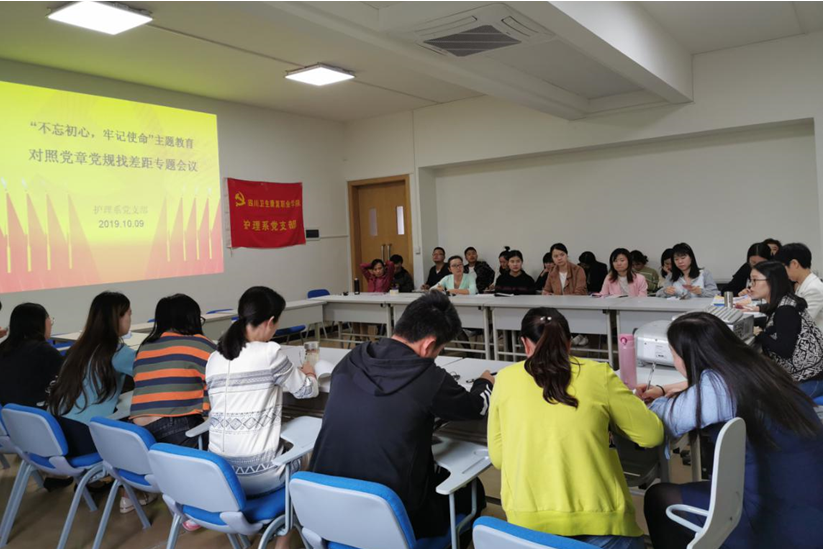 根据学院党委“不忘初心,牢记使命”主题教育工作部署,10月9日下午,护理系党支部在3-B211召开对照党章党规找差距专题会议。会议由支部常务副书记兰瑚主持,全体党员同志参加。