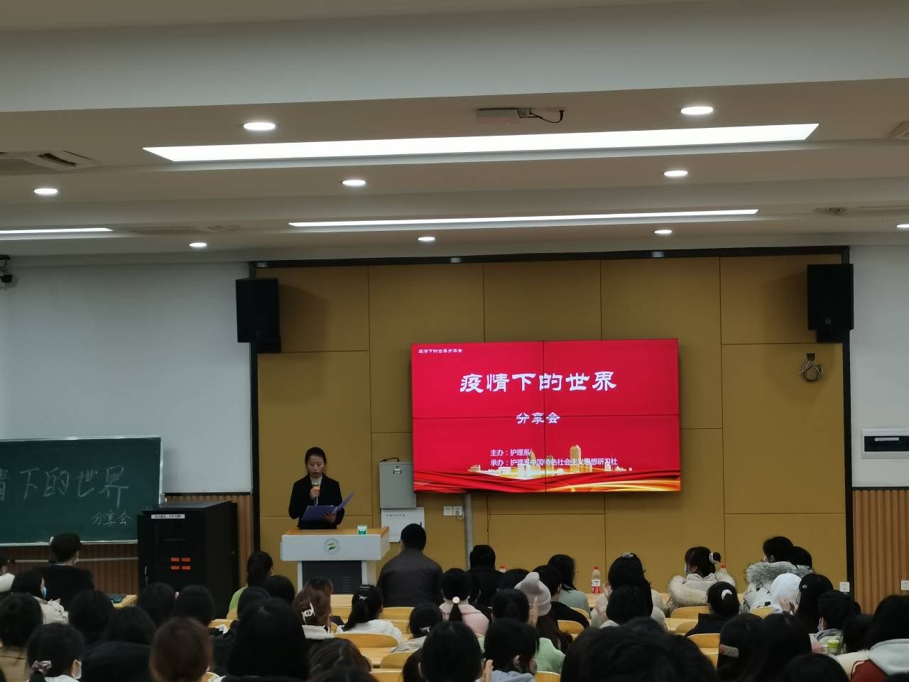 为增强学生疫情防控意识,激发学生爱国主义情感,12月8日晚,由护理系团总支主办,研习社承办的“疫情下的世界”分享会在4-D303举行。