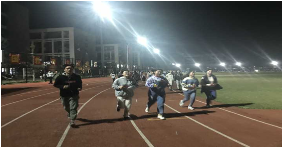 本次夜跑活动主要以跑步为主,另兼有羽毛球、跳远等活动项目。每次夜跑开始前,体育委员组织同学们进行肌肉拉伸等热身运动,部分同学则作为志愿者维持秩序与提供后勤服务,为同学们的夜跑做好后勤保障。自活动自开展以来,受到了同学们的热烈响应,大家均积极主动的参与夜跑活动。同学们纷纷反映夜跑活动让他们放下了手机里的游戏与电影,让他们从宿舍走向操场,让他们从睡大觉到锻炼自己的身体,同时也让他们在青春岁月里,留下人生美好的记忆。