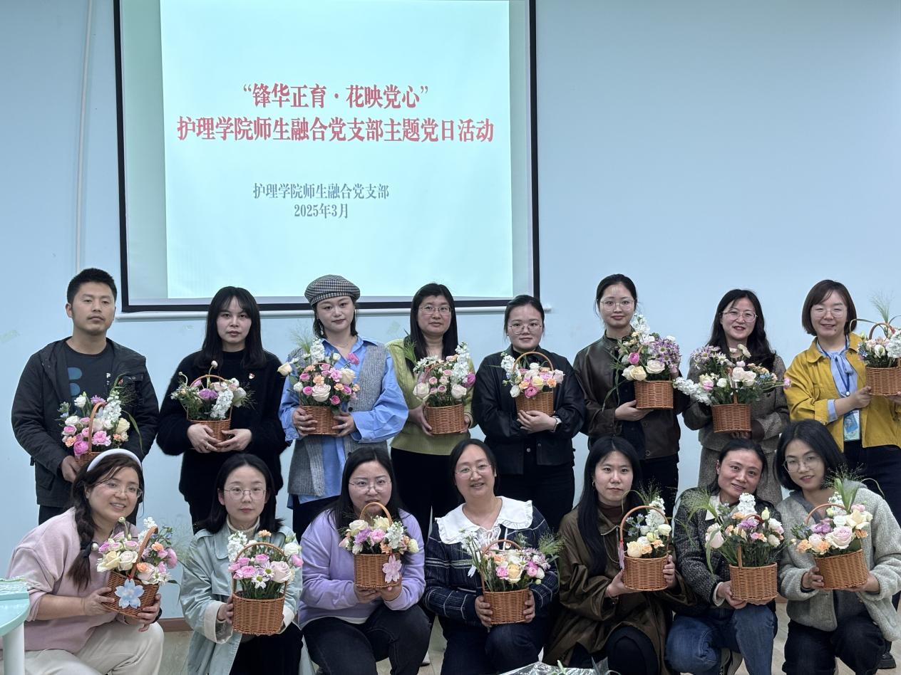 在毛泽东同志“向雷锋同志学习”题词62周年之际,护理学院师生融合党支部于3月26日在一站式学生社区党团工作室举办“锋花共育·花映党心”主题党日活动。教师党员、入党积极分子、团员累计100余名通过“冥想唤醒初心——花艺对话精神——分享践行使命”的创新流程,将雷锋精神具象化为可感可知的育人实践,探索新时代党建与美育深度融合的创新路径。