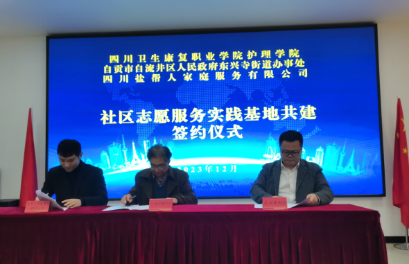 为有效推动大学生志愿服务,提升大学生的社会责任感,12月13日下午,护理学院与东兴寺街道、盐帮人家庭服务有限公司共同建设社区志愿服务基地签约仪式隆重举行。东兴寺街道办事处主任张皓峰、盐帮人家庭服务有限公司总经理胡缘勇、护理学院副院长段河军、街道各社区代表、学院师生代表参加了签约仪式。