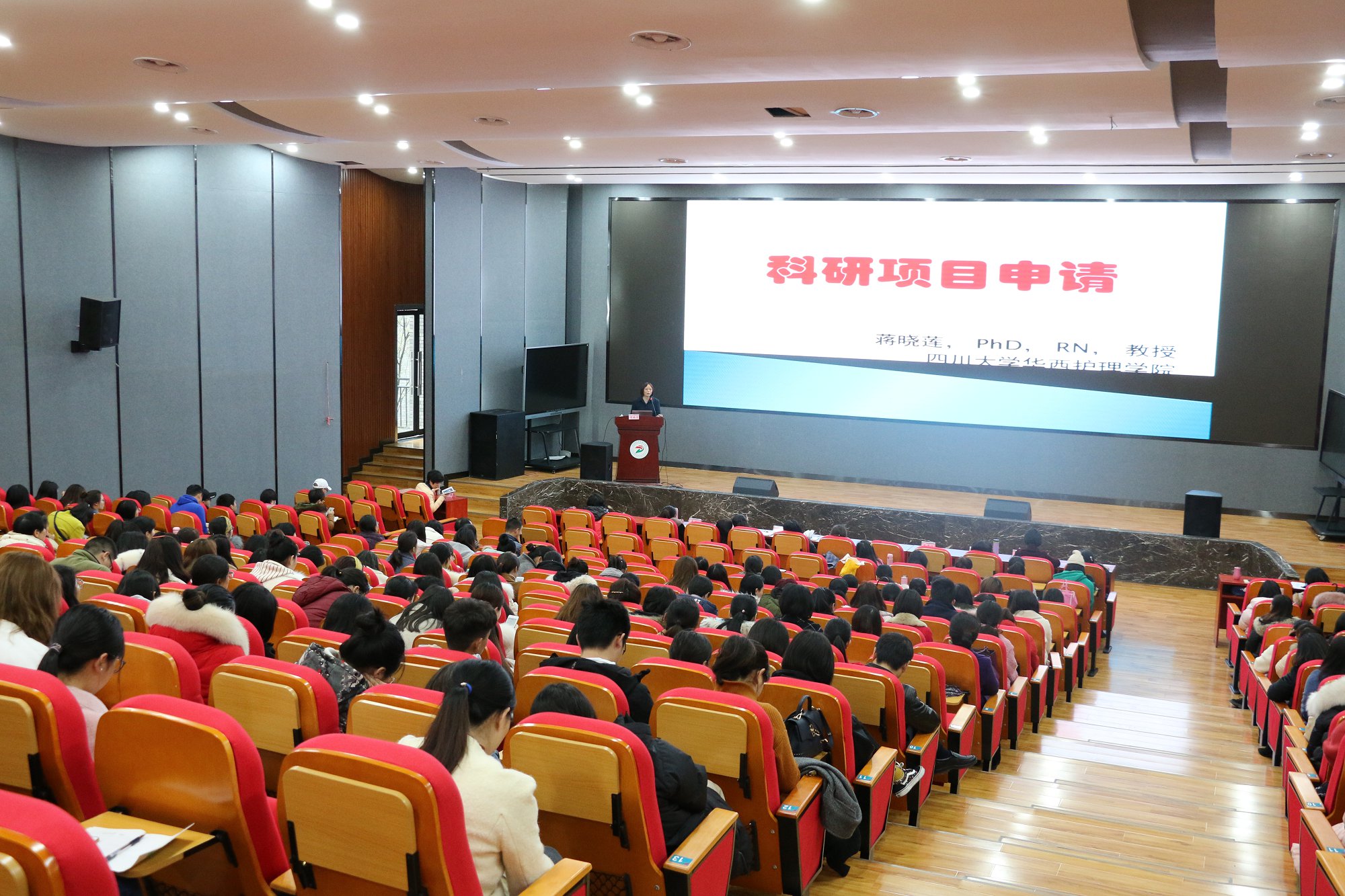为进一步提升我市护理教师和护理人员的科研水平,3月7日,bat365官方网站护理系联手自贡市护理学会教育专委会,在bat3653号楼C209学术报告厅举行学术讲座《护理科研的申报》。四川大学华西医院蒋晓莲教授担任主讲。我市及周边地区共13 家医疗机构及bat365教师近300余人参加此次讲座。