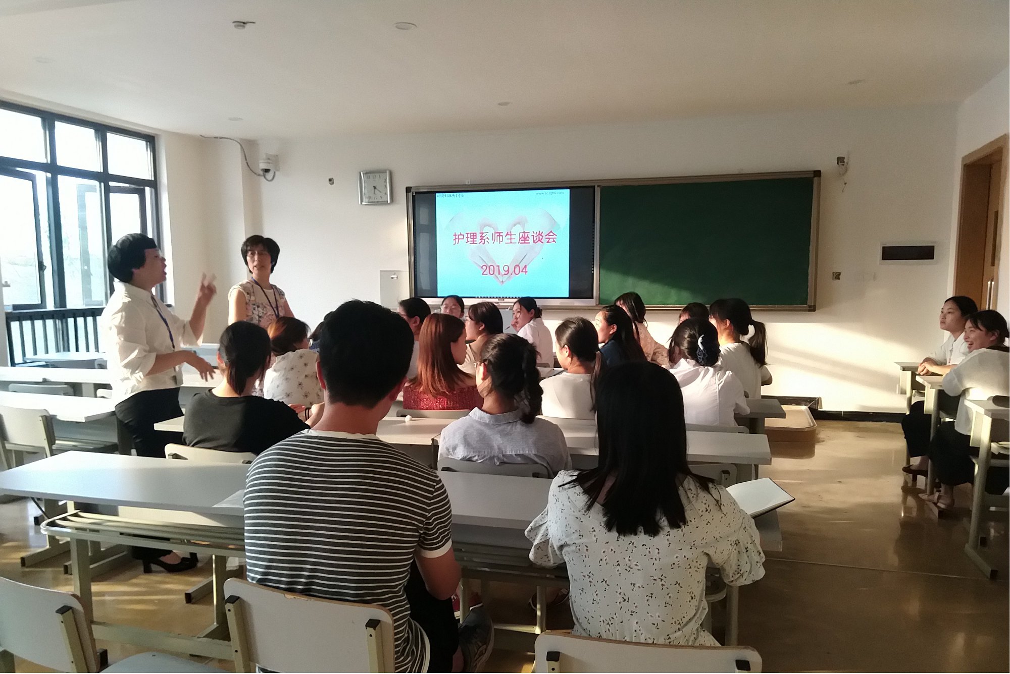 为提高教育教学质量,促进护理、助产、医美专业建设,强化学生管理,4月23日下午5点30分,护理系在3号楼B311召开本学期护理系师生座谈会。此次座谈会由护理系教学干事郭娟主持,护理系主任邹金梅、实训教研室主任黄永先、护理系学工干事夏雨以及30名学生代表参会,共同就教育教学、学生管理等相关问题展开了探讨。