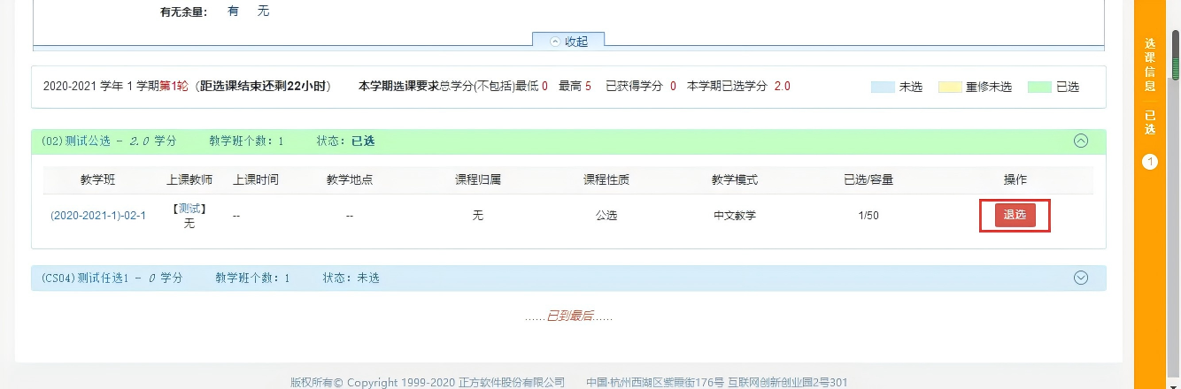 (7)退选课程,点击选课界面中课程查看——点击退选即可