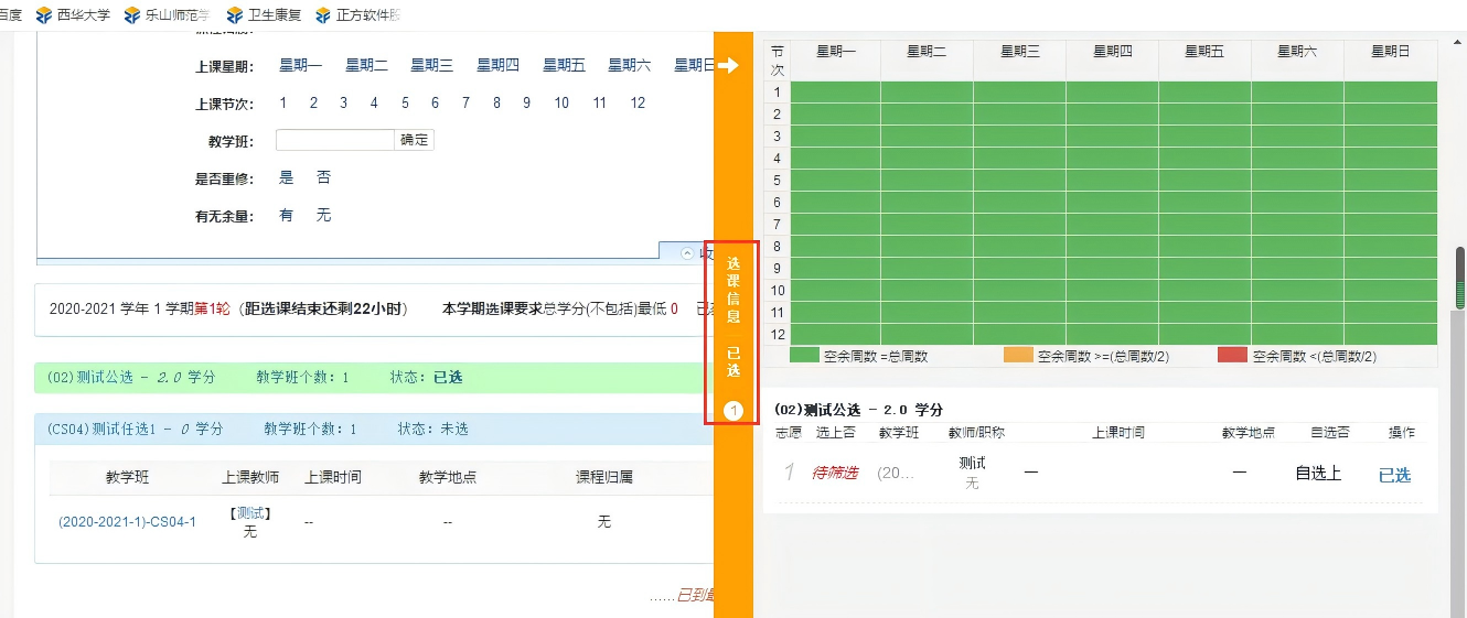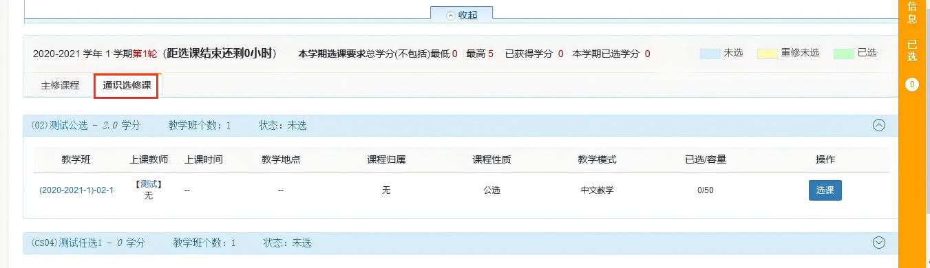 (6)点击右边的选课信息可以看到已选的所有课程