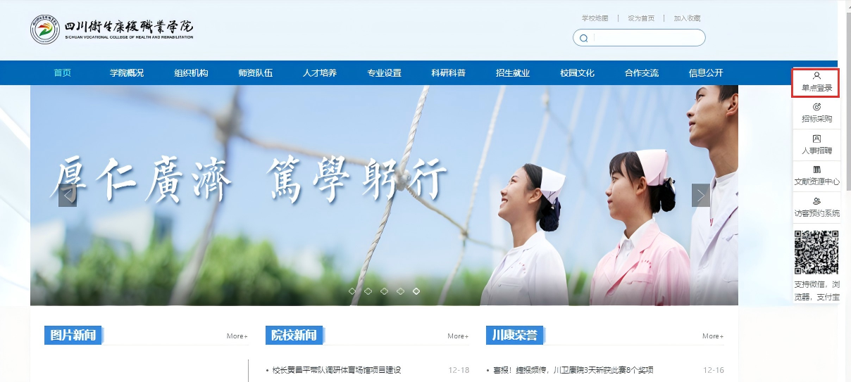 登陆学院官网-点击页面左下角【单点登录入口】