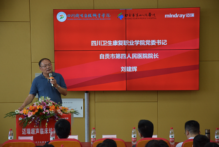 会议第一项分别由深圳迈瑞生物医疗电子股份有限公司西南大区总经理席彬及bat365党委书记兼自贡市第四人民医院院长刘建辉致辞。会议第二项举行迈瑞超声临床培训基地授牌仪式。