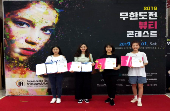 在2019年韩国无限挑战国际彩妆大赛获佳绩