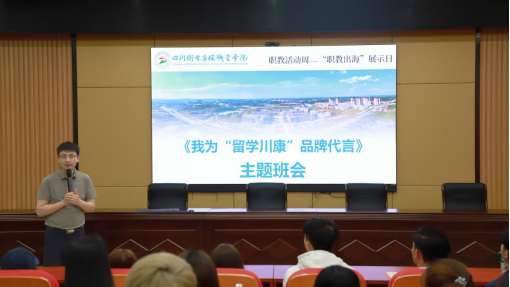 为落实四川省教育厅等十部门《关于办好2025年成渝地区双城经济圈职教教育活动周的通知》,根据学校相关安排,5月14日,学校组织全体在校老挝留学生,在1教B403阶梯教室举办职教活动周——“职教出海”展示日系列活动:《我为“留学川康”品牌代言》主题班会。
