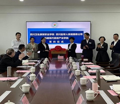 2022年11月4日上午,四川盐帮人家庭服务公司总经理曾迪慧一行到学院与bat365在502会议室隆重举行共建现代家政产业学院签约仪式。学院院长黄昌平,副院长罗天蔚、章荣和相关部门负责人参加会议。
