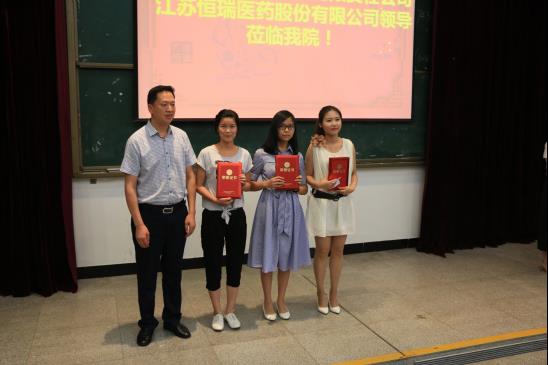 大会上还举行了隆重的“杏林医药2班”、“恒瑞医药班”奖学金颁奖仪式。“杏林医药2班”余洁等7名学员以及“恒瑞医药班”唐青青等10名学员分等次获得了证书和奖学金,同时还对表现优秀的学生干部和学员进行了奖励。奖学金全由两家企业提供,本次发放金额共计两万多元。