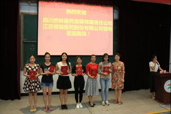 最后,江苏恒瑞医药股份有限公司四川区经理赵明宇、四川杏林医药连锁有限责任公司人力行政部总监张伟分别代表两家公司致辞。张伟表示在校企合作培养中,学员的潜力可被充分地挖掘和发挥,并期待校企双方进一步更加深入和广泛的合作。赵明宇则希望学员们,除了学习好专业知识,还须做到以下三点:一是做好从头学、不断学的准备;二是要长期坚持,克服困难,不断前进;三是要真诚待人,善待自己,多忠厚老实,少斤斤计较。