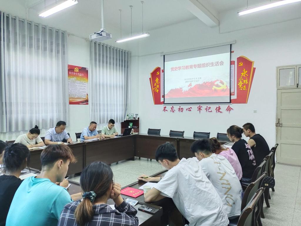 7月14日下午澳门网投官方网站学生党支部在澳门网投官方网站会议室召开党史学习教育专题组织生活会,支部全体党员参加了会议,党总支书记高立平、专职组织员王辉以普通党员的身份参加本次专题组织生活会,会议由学生党支部书记王立同志主持。
