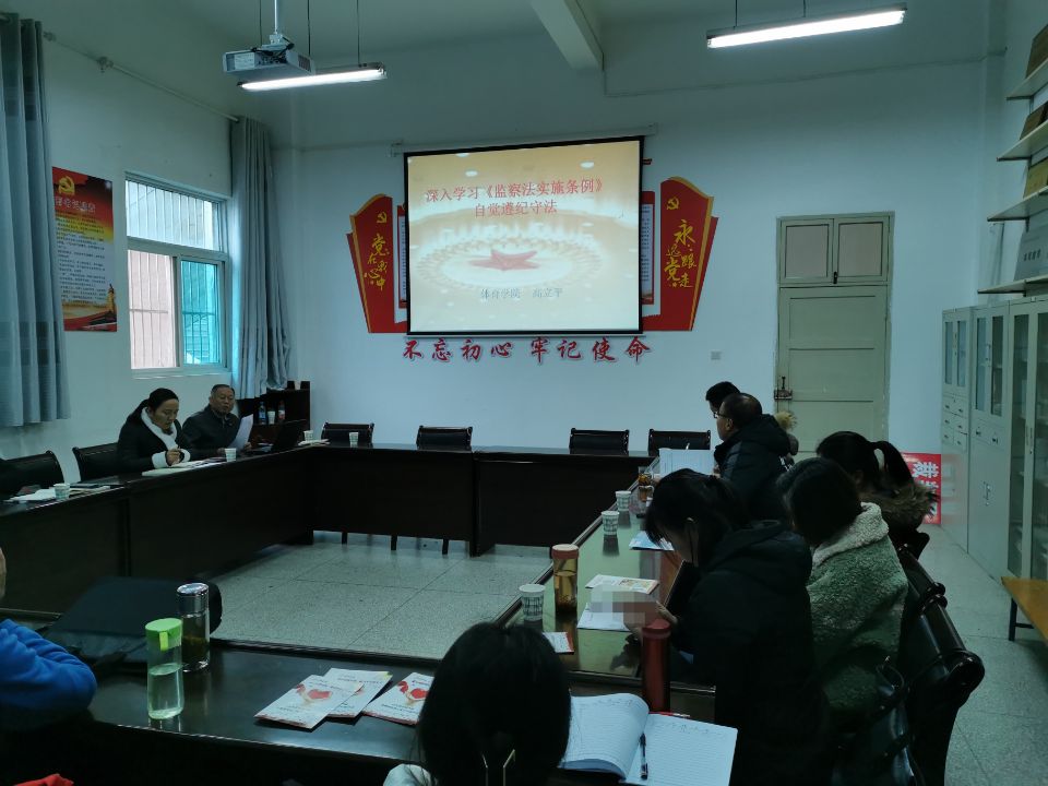 为深入贯彻习近平法治思想,落实宪法和监察法的精神。根据学校统一要求,12月8日下午,澳门网投官方网站在体育馆一楼会议室开展监察法实施条例专题学习活动,澳门网投官方网站全体教职工参加了学习。主讲人:澳门网投官方网站党总支书记高立平。
