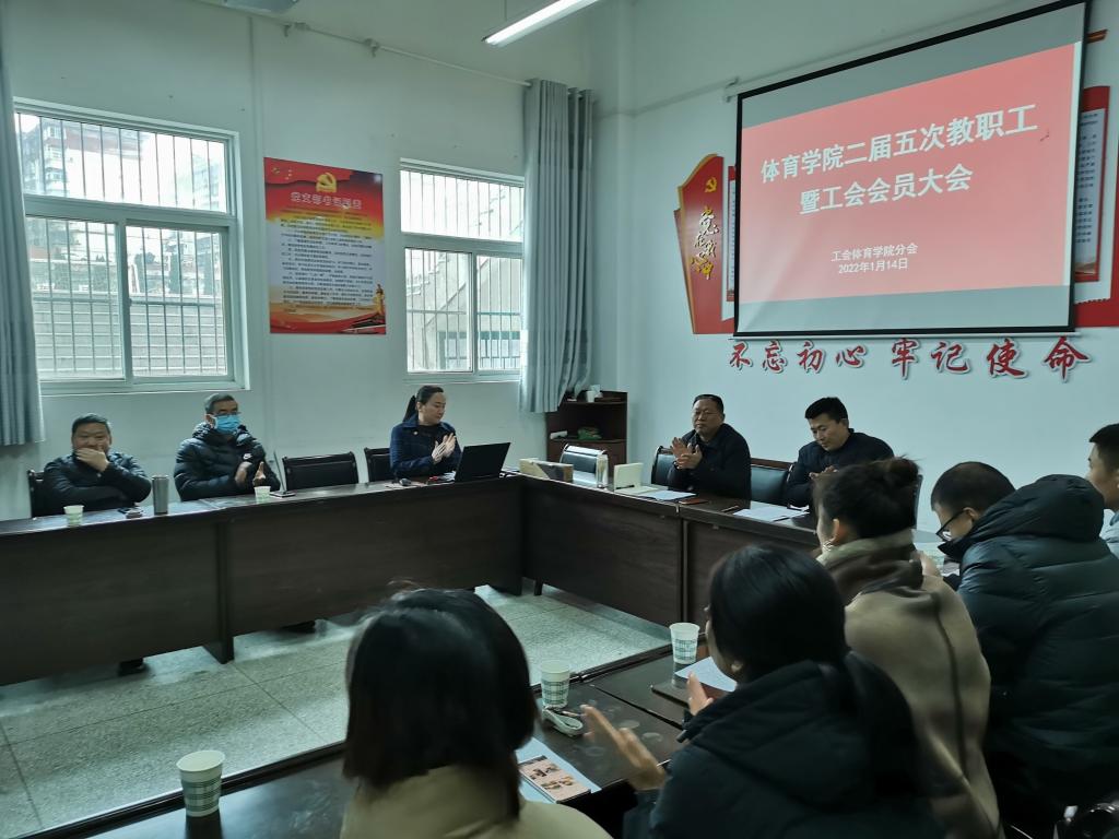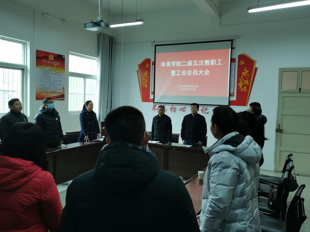 2022年1月14日下午,澳门网投官方网站在体育馆一楼会议室召开二届五次教职工暨工会会员大会,澳门网投官方网站32名教职工参加了本次大会,大会由澳门网投官方网站党总支书记高立平同志主持。