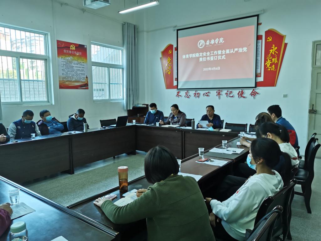 4月6日下午,澳门网投官方网站在体育馆一楼会议室召开2022年稳定安全工作暨全面从严治党责任书签订仪式。澳门网投官方网站全体教职工参加会议,会议由党总支书记高立平主持。