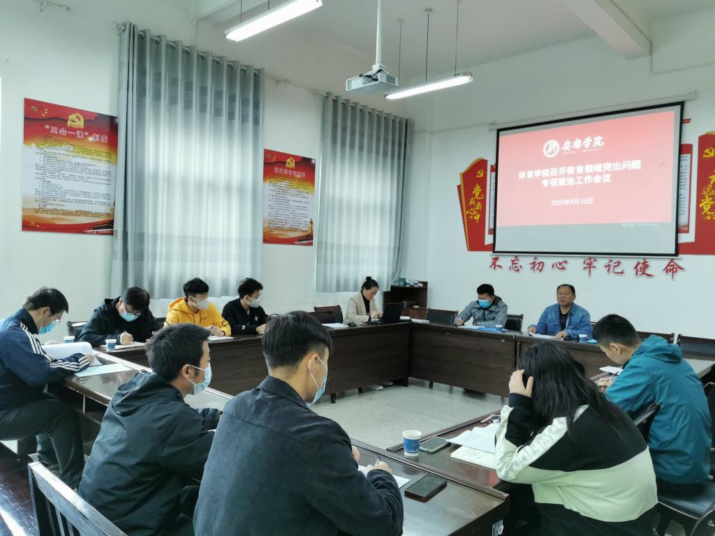 为贯彻落实省委教育工委《陕西教育领域突出问题专项整治工作方案》要求,根据安康学院《陕西教育领域突出问题专项整治专题学习周工作安排》,我院于4月15日上午在体育馆1楼会议室召开陕西教育领域突出问题专项整治专题理论学习会。学院党总支书记高立平、教学副院长郭西魁、学工人员、行政人员参加了会议。会议由高立平书记主持。