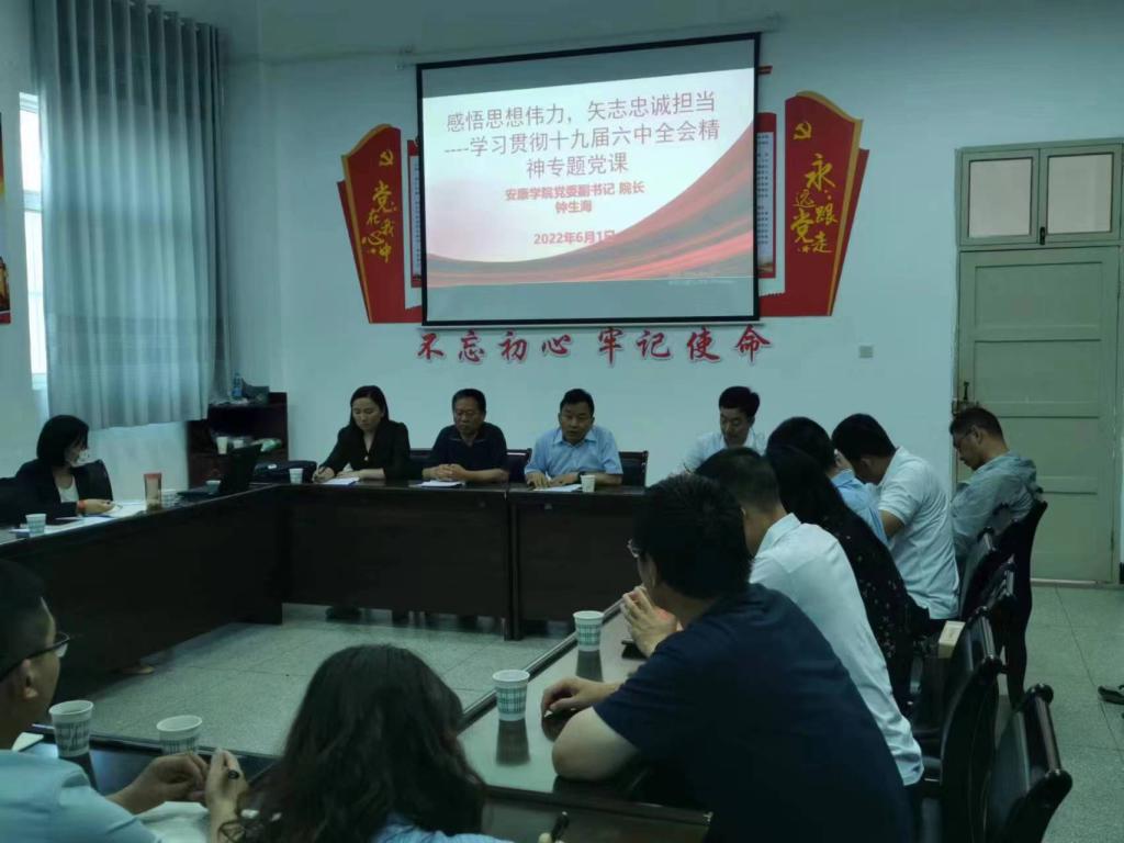 6月1日下午,安康学院院长、党委副书记钟生海同志在澳门网投官方网站会议室为教工支部党员讲了主题为“感悟思想伟力,矢志忠诚担当”的关于学习贯彻十九届六中全会精神专题党课,全体教工支部党员参加了会议。