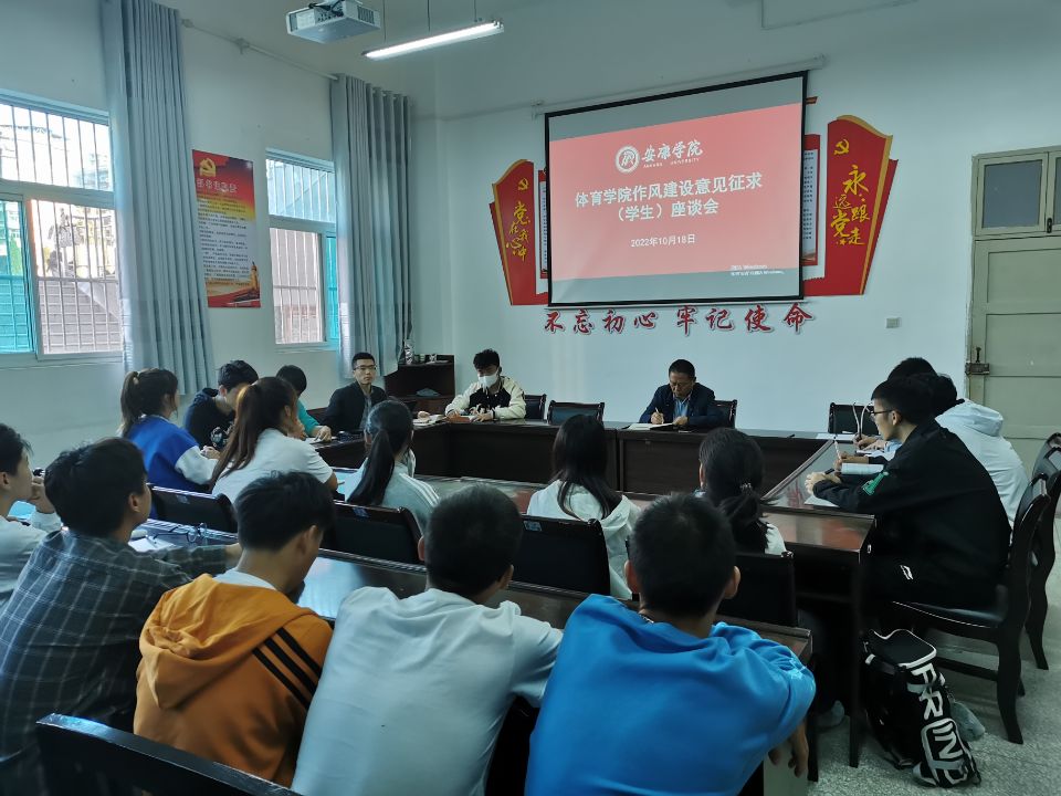 10月19日,我院在体育馆一楼会议室召开作风建设意见征求学生座谈会,学院党总支书记高立平、学工办副主任王立、团总支书记康梦瑶以及各班学生代表参加了座谈。