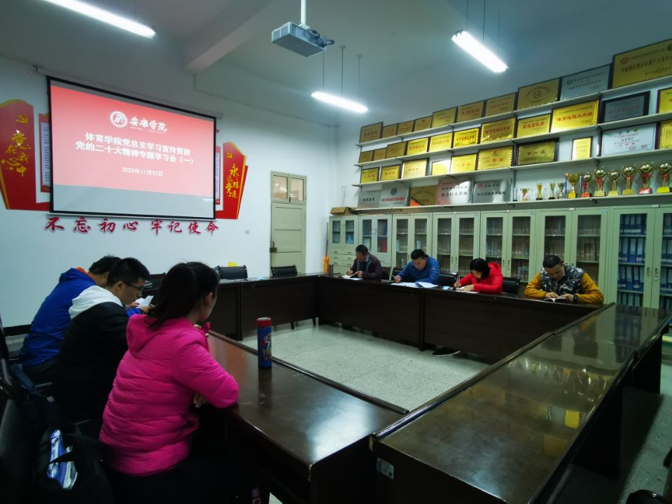 11月22日,澳门网投官方网站党总支在体育馆1楼会议室召开会议,安排部署澳门网投官方网站关于党的二十大精神的宣传和学习工作,参会人员党总支委员和两个支部委员及团总支书记等,会议由党总支书记高立平主持。