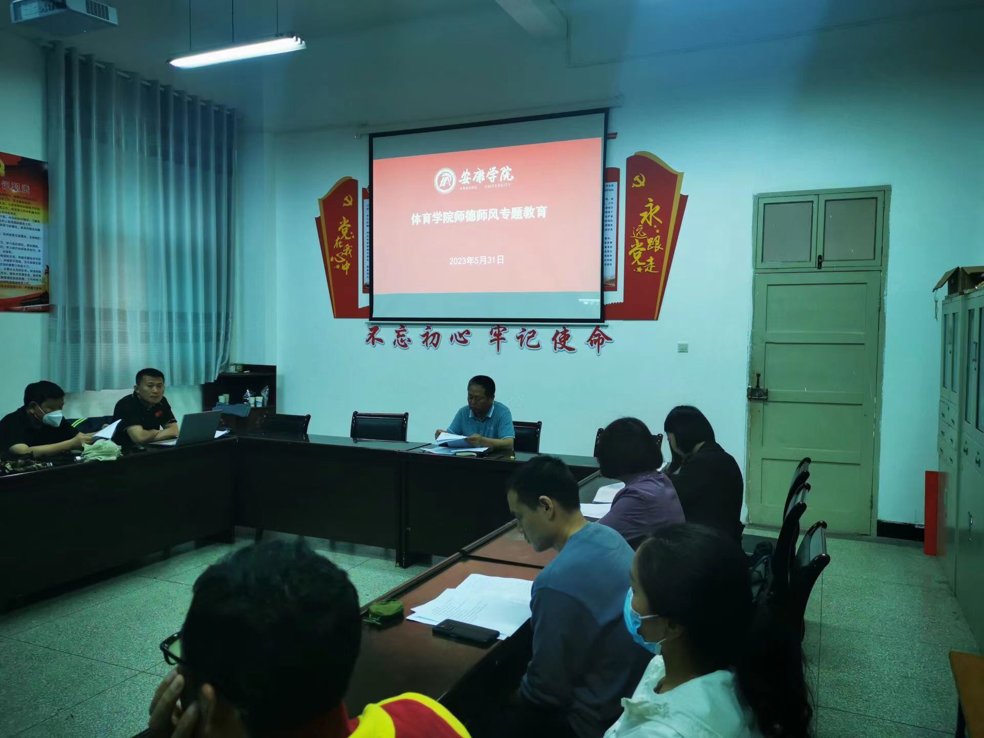 5月31日在体育馆会议室召开师德师风教育专题会议。我院全体教师参加会议。会议由党总支书记高立平主持。