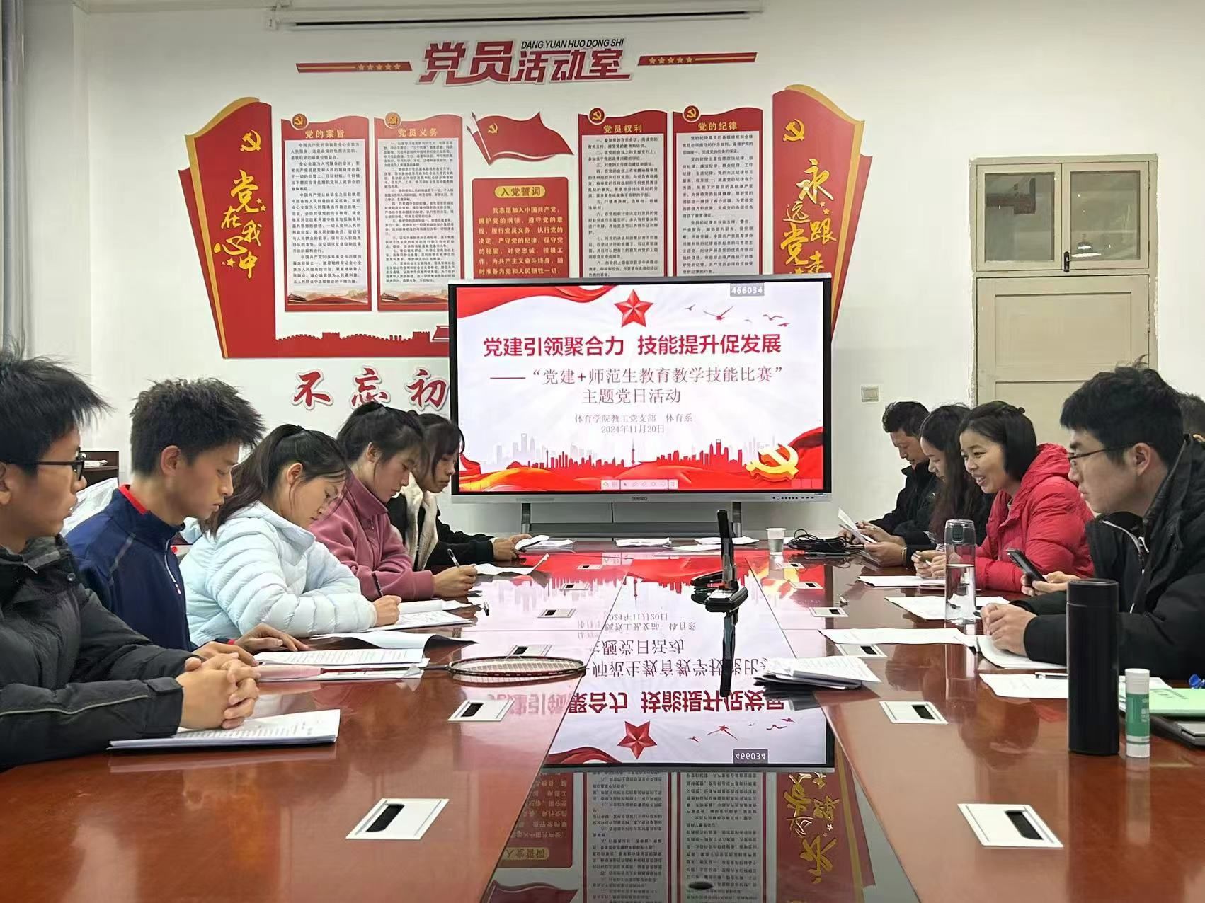 为深入贯彻党的教育方针,推动党建工作与专业教育的深度融合,进一步提高我院师范生教育教学技能,澳门网投官方网站教工支部联合体育系于11月21日开展了“党建+师范生教育教学技能比赛”主题党日活动。学院领导班子成员,教工党支部书记、体育系主任等部分党员教师参加了活动。