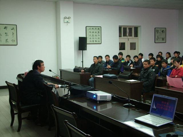 2010年11月26日下午5:30,体育系在图书馆六楼报告厅组织召开了冬季生活安全教育和期末考试动员大会,系学生工作领导小组全体成员和体育系全体学生参加了大会。大会由体育系副主任鲁宗成主持。