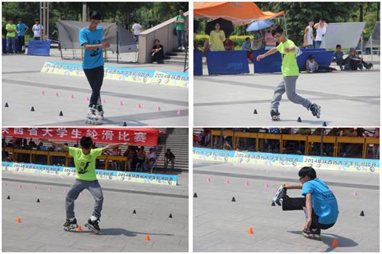 由陕西省教育厅主办的首届全省大学生轮滑比赛于5月17日至18日在陕西科技大学举行,共有33所院校近300名运动员参加了比赛。我校轮滑协会派出8名学生组队参加了男子乙组速度过桩、花式绕桩、双人花式绕桩和花式刹停4个项目的比赛。经过奋力拼搏,李行和闫琪取得了双人花式绕桩项目第7名,王明明和彭强两位同学被授予“优秀运动员”荣誉称号。