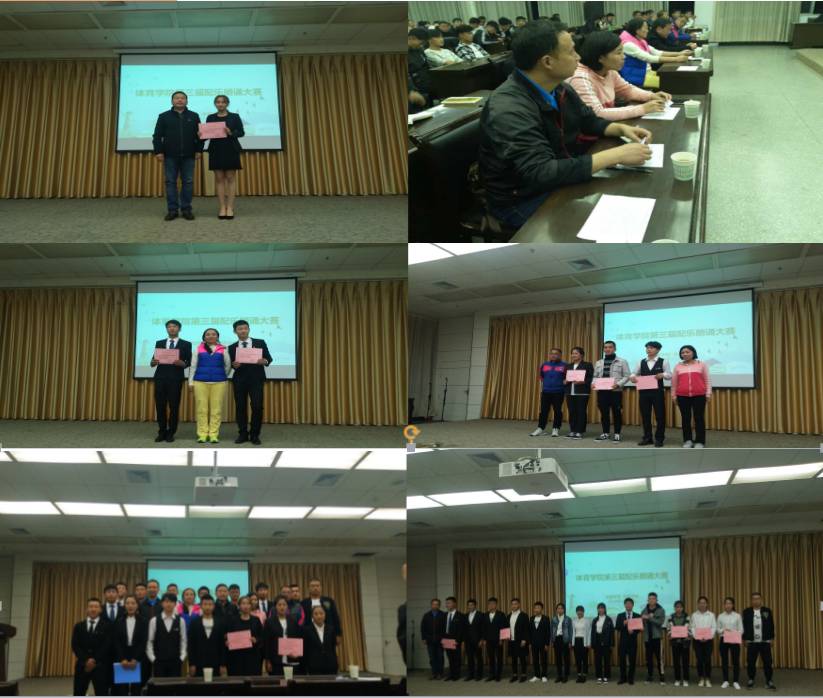 通过前期的宣传动员,班级预赛,年级复赛,12组选手顺利进入决赛,通过激烈角逐, 最终,体教2018级2班学生张成莹获得一等奖;2017级2班郭怀远、郝晨雅,2018级2班薛鹏获得二等奖;2018级2班李青青,2017级2班龙万良,2018级1班党浩源获得三等奖。