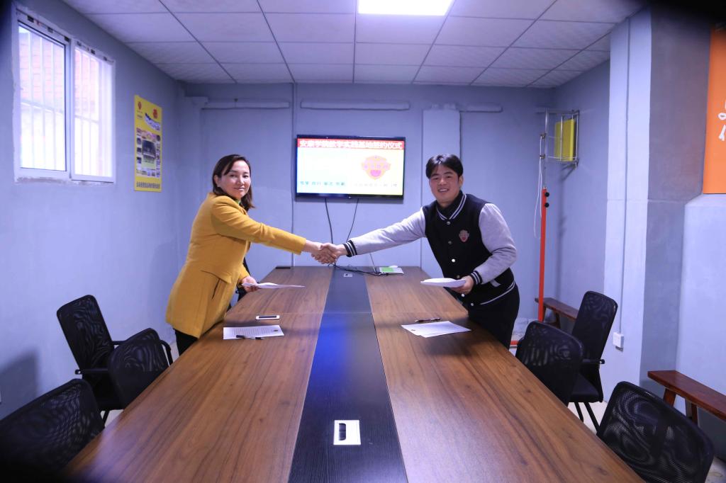 在走访过程中,考察组与我院近几年毕业在该公司就业毕业生开展座谈,向云镒、王维、刘开伟、张景波等参加座谈会,考察组全面了解在岗适应情况、待遇福利,知识体系和实际应用衔接,职业发展等问题。高立平书记对童乐体育优先接收我院毕业生表示感谢,希望与公司进一部加强合作,加大在我校接收毕业生力度,同时建立起校企合作培养人才模式,适应企业发展需求。在此倡议下,双方共同签署“安康学院实践教学基地”协议书,并在附小校区办公室举行挂牌仪式。