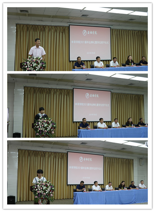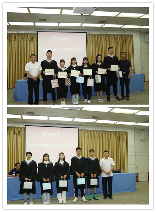 院长吕仙利教授宣读了2021届毕业学生名单、学士学位授予名单。庄严的学士学位授予仪式开始,吕仙利教授,冯德学教授等6位老师为2021届毕业生授礼并颁发了学位证书。