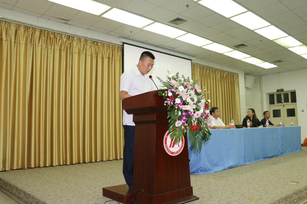 副院长郭西魁宣读了2021届毕业生获得省、校、院三级级优秀毕业生考取研究生的表彰决定及获奖名单,并举行了颁奖仪式。高立平书记为2021届毕业生郝晨雅、杜玉涛颁发了校友联络员聘书。
