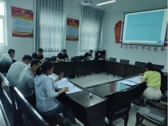 5月19日,大学体育教研室在澳门网投官方网站会议室召开课程思政研讨会,教研室全体教师参加。本次会议从大学体育课程的教学大纲入手,由负责课程大纲修订的老师,详细讲解各科目大纲,特别是课程思政设计方面的具体细节。
