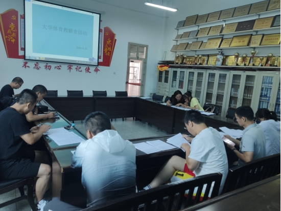 6月30日,大学体育教研室在澳门网投官方网站会议室召开大学体育课程改革研讨会。会议由大学体育教研室主任李强主持,大学体育教研室全体老师出席本次研讨会。本次研讨会围绕进一步提升体育教学成效,规范体育教学环节管理进行了深入交流和讨论。