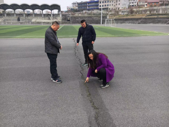 检查人员依次对澳门网投官方网站实验室、江南、江北体育器材室、篮球场、单杠、双杠、足球场、乒乓球场、羽毛球场、田径场等场地及器械进行了检查,对设施的固定情况,使用年限,安全隐患进行评估,吕院长强调器材如有损坏需及时维修或者更换确保学生使用安全。在江北校区田径场跑道有严重裂缝,高书记指出要及时和相关部门联系,做好维修服务,保证学生在上课期间的安全使用。