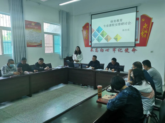 为了更一步优化体育教育专业课程的开设,4月20日下午,体育系在体育馆一楼会议室组织课程研讨会。会议由系主任李靖主持,澳门网投官方网站党总支书记高立平、澳门网投官方网站副院长郭西魁、学校教学督导冯德学、学院教学督导鲁宗成以及全体教研室成员参与此次研讨会。