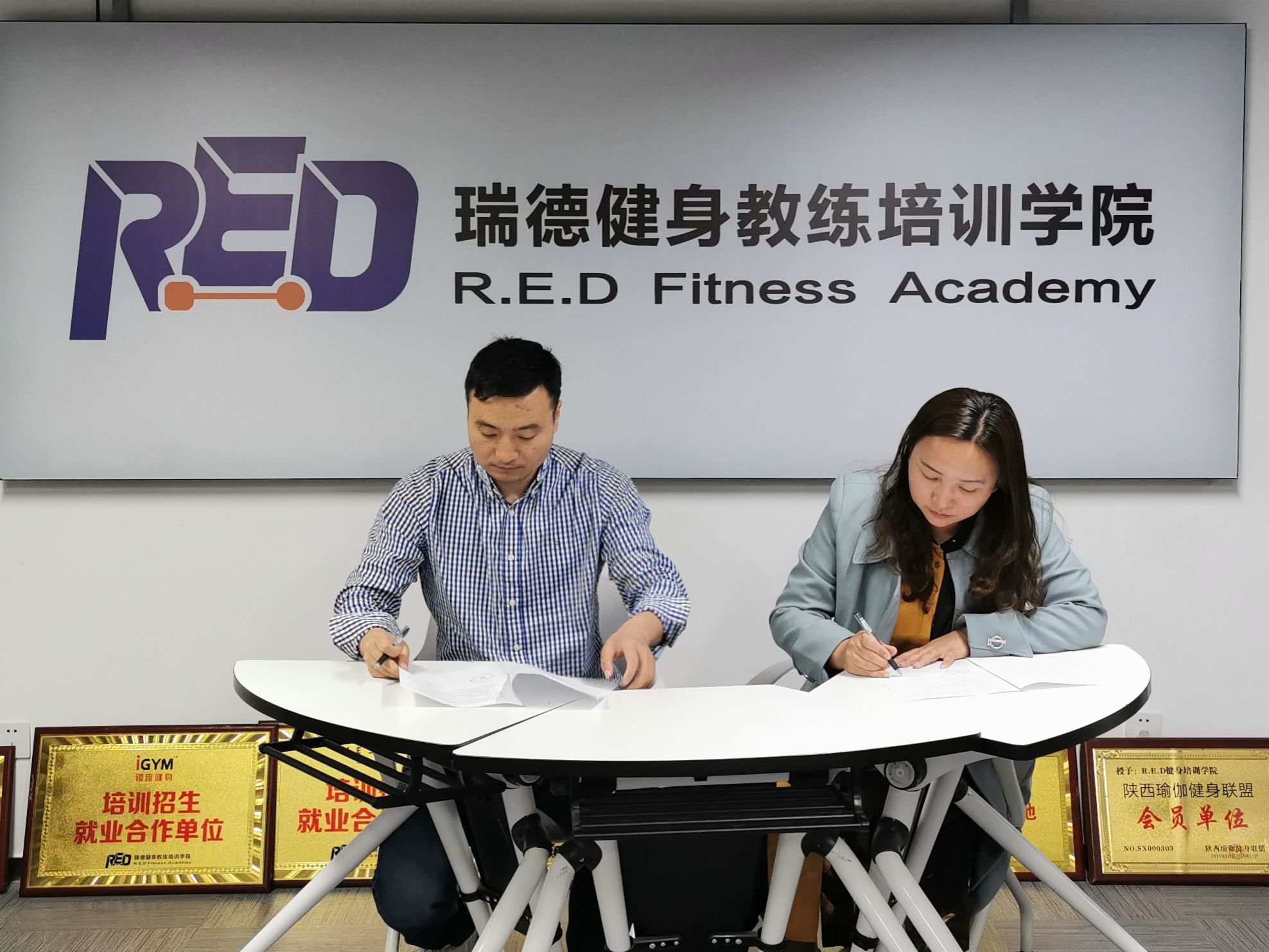 此外,吕仙利代表学院与西安瑞德健身教练培训学院签订了校外实践教学基地协议,并举行了挂牌仪式。期望以此次为契机,为学生创造更多实习和就业机会,实现校地、校企互助共赢。
