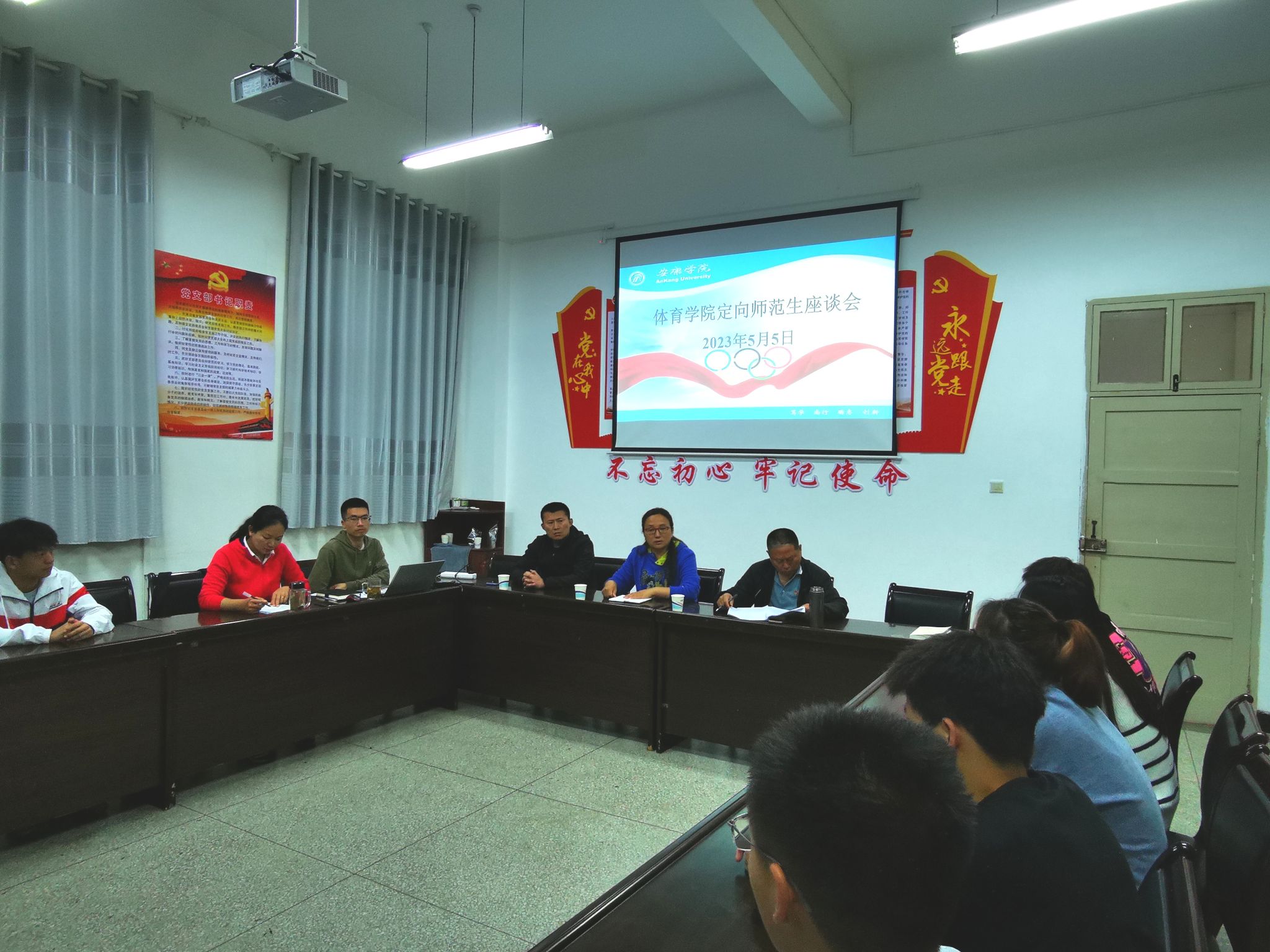 5月5日晚,澳门网投官方网站在体育馆会议室分别召开定向师范生和职业单招生座谈会。澳门网投官方网站院长吕仙利、党总支书记高立平、副院长郭西魁、学工办主任王立、体育系主任李靖出席了此次座谈会。会议由吕仙利院长主持。