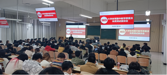 为进一步提高大学体育教学质量,全面掌握全校大学体育工作运行情况,帮助改进教学方法、提升学生学习效率,有序推进大学体育工作。近日,澳门网投官方网站分别在江南、江北校区召开2023-2024学年第1学期大学体育期中教学质量与体质测试座谈会,澳门网投官方网站部分教师、2022、2023级各班班长、体育委员及各二级学院学生分会体育部干部参加座谈会,会议由学院副院长李靖主持。