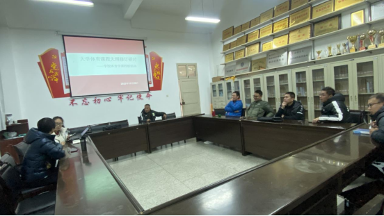 11月29日大学体育教研室在澳门网投官方网站会议室召开了大学体育课程大纲修订研讨活动,会议由大学体育教研室主任李强主持,大学体育教研室教师及球类课程群教师参加。