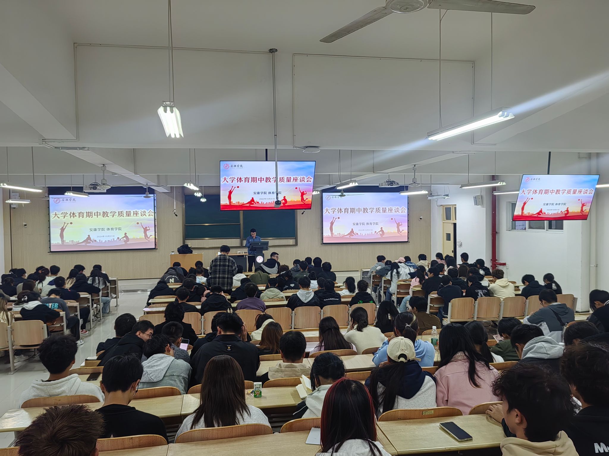 为进一步提高大学体育教学质量,全面掌握全校大学体育工作运行情况,帮助改进教学方法、提升学生学习效率,有序推进大学体育工作。2024年10月31日和11月1日,澳门网投官方网站分别在江南、江北校区召开2024-2025学年第1学期大学体育期中教学质量座谈会,澳门网投官方网站副院长李靖、澳门网投官方网站教学办主任赵娇艳、大学体育教研室副主任王俊杰及各二级学院学生会体育部干部、2023级、2024级各班班长、体育委员等学生代表参加座谈会。会议由大学体育教研室副主任王俊杰主持。