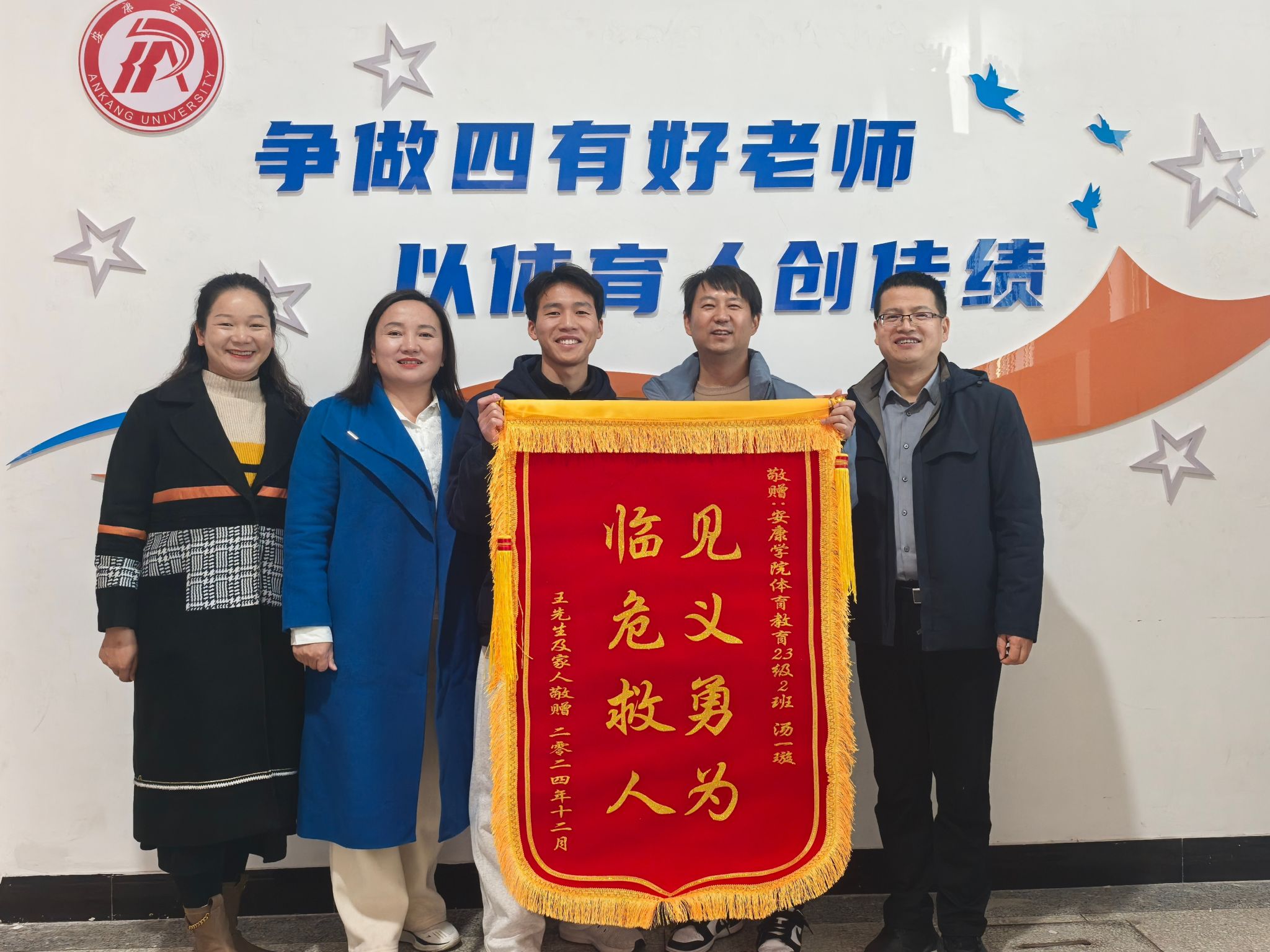 12月18日下午,一位特殊的客人造访澳门网投官方网站,将写有“临危救人,见义勇为”的锦旗赠给了该院2023级体育教育专业2班学生汤一璇,对他在危难时刻展现出的英勇行为和大爱精神表示了最诚挚的感谢。